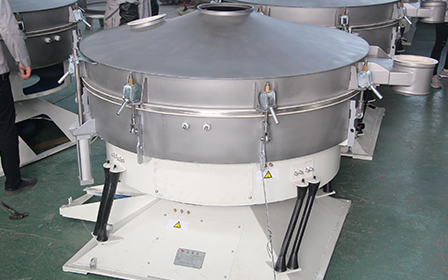 物料從頂部進(jìn)入口連續(xù)進(jìn)料,在搖擺篩作業(yè)下從中心擴(kuò)散至整個(gè)篩網(wǎng)表面,較細(xì)的顆粒穿過篩網(wǎng),較粗的顆粒依次向外圍滑動(dòng),通過出料口排出,每層重復(fù)此篩分過程。